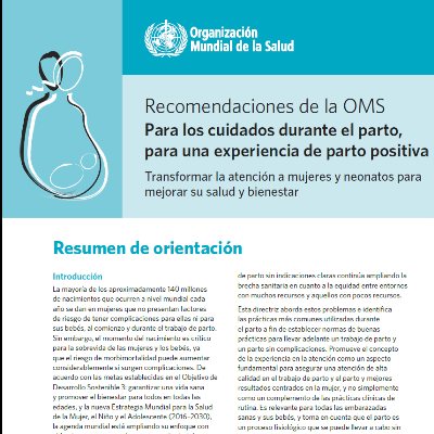 Título:  56 recomendaciones de la OMS basadas en evidencia para la atención del parto y al neonato