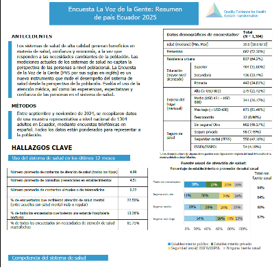 Descripción: Con el apoyo del Proyecto QuEST de la Escuela de Salud Pública de la Universidad de Harvard, entre septiembre y noviembre de 2024, FIGESS e IPSOS recopilaron información de una muestra representativa a nivel nacional de 1304 adultos en Ecuador, mediante encuestas telefónicas.