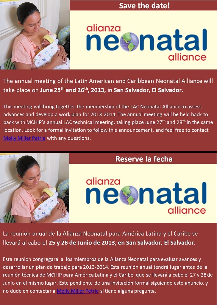 Descripción: Noticia sobre reunión anual de Alianza Neonatal y reunión técnica de MCHIP para América Latina y el Caribe.